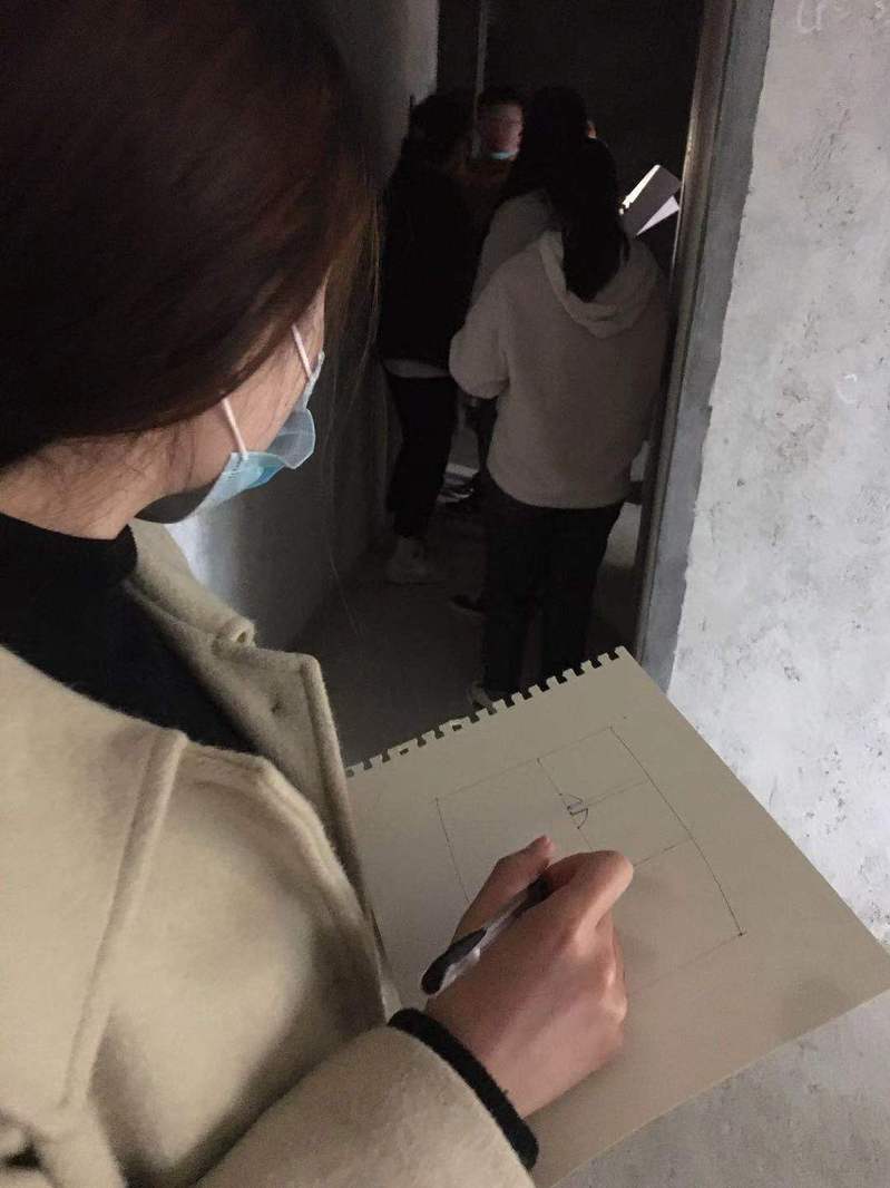 所有同學兩兩一組合作,在熟悉了該房間的戶型後,大家手繪了戶型圖,並開始測量,將課本上學習到的的測量知識運用到實踐中來。對控製測量和戶型圖測繪過程的整體概念有了良好的了解後,大家學會了更熟練地使用卷尺等測量儀器與工具,並且對戶型設計有了較深的認識,鞏固了理論教學知識,提高了實際操作的技能。