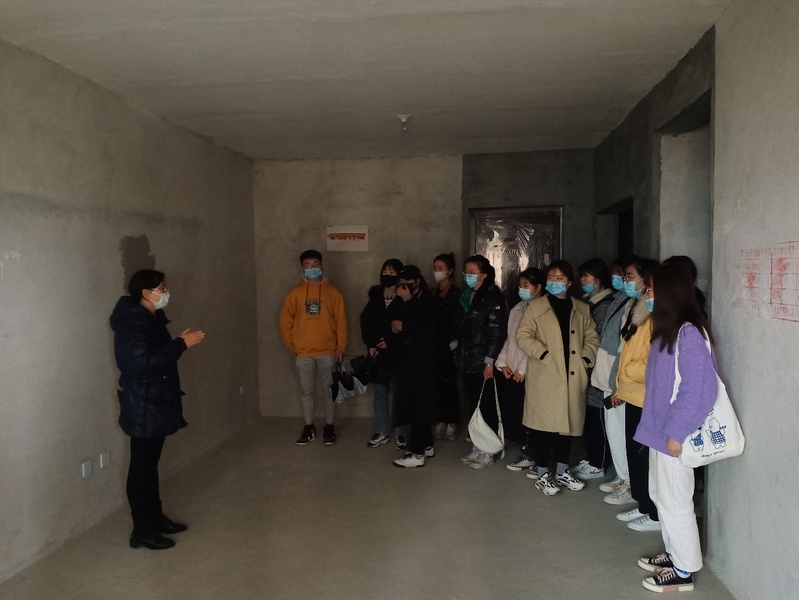 202135日下午,根據藝術設計專業《室內裝飾材料與構造》課程教學計劃,我係朱妍林老師帶領2019級藝術設計班的學生來到中辰書香裏小區,針對室內毛坯房進行尺寸的精確測量並放樣。