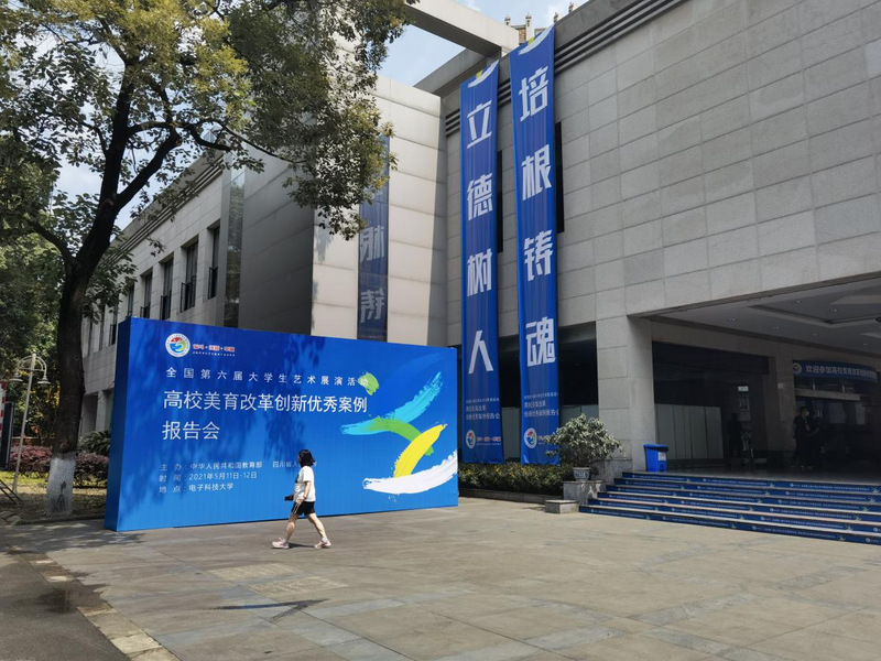 除了觀摩學習大學生藝術展演相關活動外,我係專業教師還前往四川電子科技大學,參加“高校美育改革創新優秀案例報告會”。報告會由各省高校提交優秀美育案例,通過專家點評,代表分組討論的形式進行優秀作品展示。