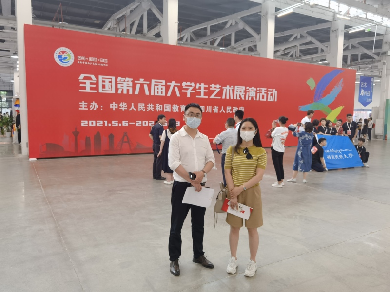 2021年5月9日至12日,我校藝術與設計係三位專業教師,在校係兩級領導安排下,赴四川成都觀摩學習以“奮鬥·創新·奉獻”為主題的全國第六屆大學生藝術展演活動。