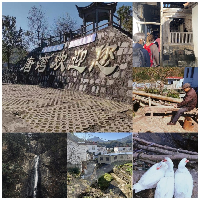 唐灣村地處桐城市西部,風景優美。放眼望去,在碧水青山的背景下一片片錯落有致的房屋,一道瀑布飛流直下,如同一幅飄忽不定的銀簾,水霧向四方飛濺,充滿了詩情畫意。清澈的流水、嬉戲的鴨群、獨具特色的民風都體現了建築與水與山與人的和諧統一。師生沉醉在美景中盡情揮毫、流連忘返。