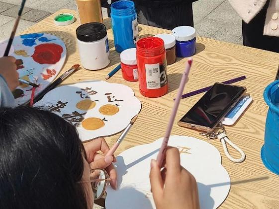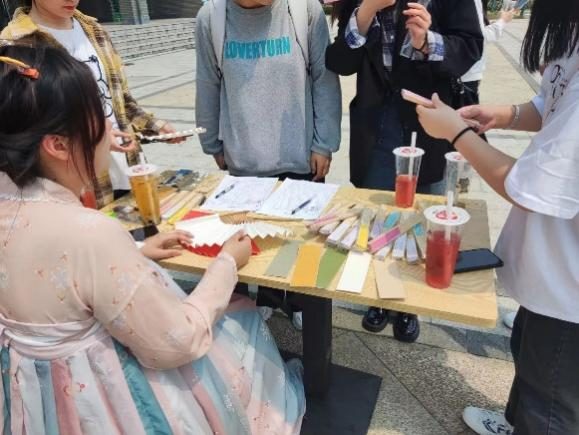 本次活動提倡綠色環保生活的理念,以手工繪製扇麵、書簽作品為主,在DIY中融於中國優秀傳統文化元素。一經開展就吸引了廣大同學的關注,大家積極排隊登記參與,體驗創意手繪的樂趣。