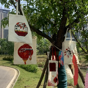 活動現場展示的手繪國風元素文創包