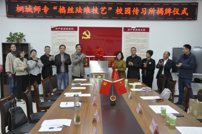 1月1日,桐城市非遺保護中心來我校舉行桐城市非物質文化遺產保護項目“掐絲琺琅技藝”校園傳習所授牌儀式。校黨委副書記、校長沈波出席活動,教務處、辦公室及藝術與設計係等相關部門負責同誌參加。