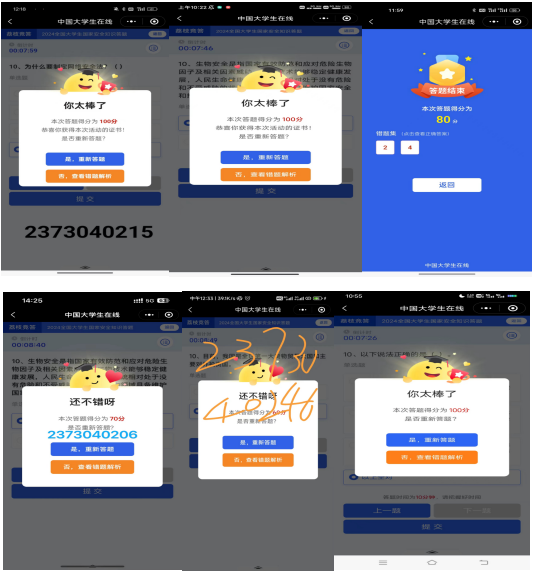 4月10日至419日期間,組織學生通過中國大學生在線網站或微信公眾號參與線上“全國大學生國家安全知識答題活動,通過答題活動引導同學們堅定維護國家政權安全、製度安全、意識形態安全,營造國家安全人人參與、人人有責的濃厚氛圍。