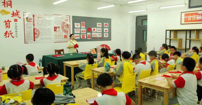 二是開展“桐城剪紙”非遺體驗活動。“桐城剪紙”非遺傳承人薛海霞老師介紹桐城剪紙的曆史並現場示範剪紙的技法步驟,小朋友親自動手進行剪紙製作。小朋友們在學習剪紙技法的同時也對這門民間藝術有了更深刻地認識。