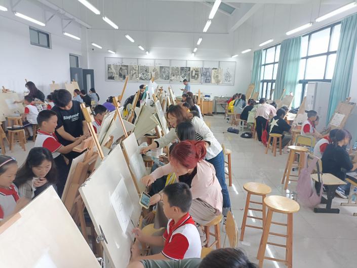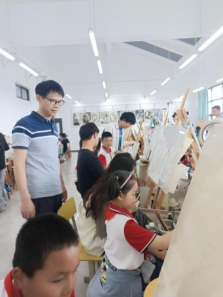 三是開展趣味“素描”體驗活動。素描體驗活動在美術南樓五樓的素描教室進行,我係的周結春老師向小朋友們簡要介紹素描的基本技巧和工具使用方法,通過簡單的幾何圖形和實物示例,教授孩子們如何捕捉物體的輪廓和基本形態,在老師的指導下,孩子們開始動手實踐體驗。