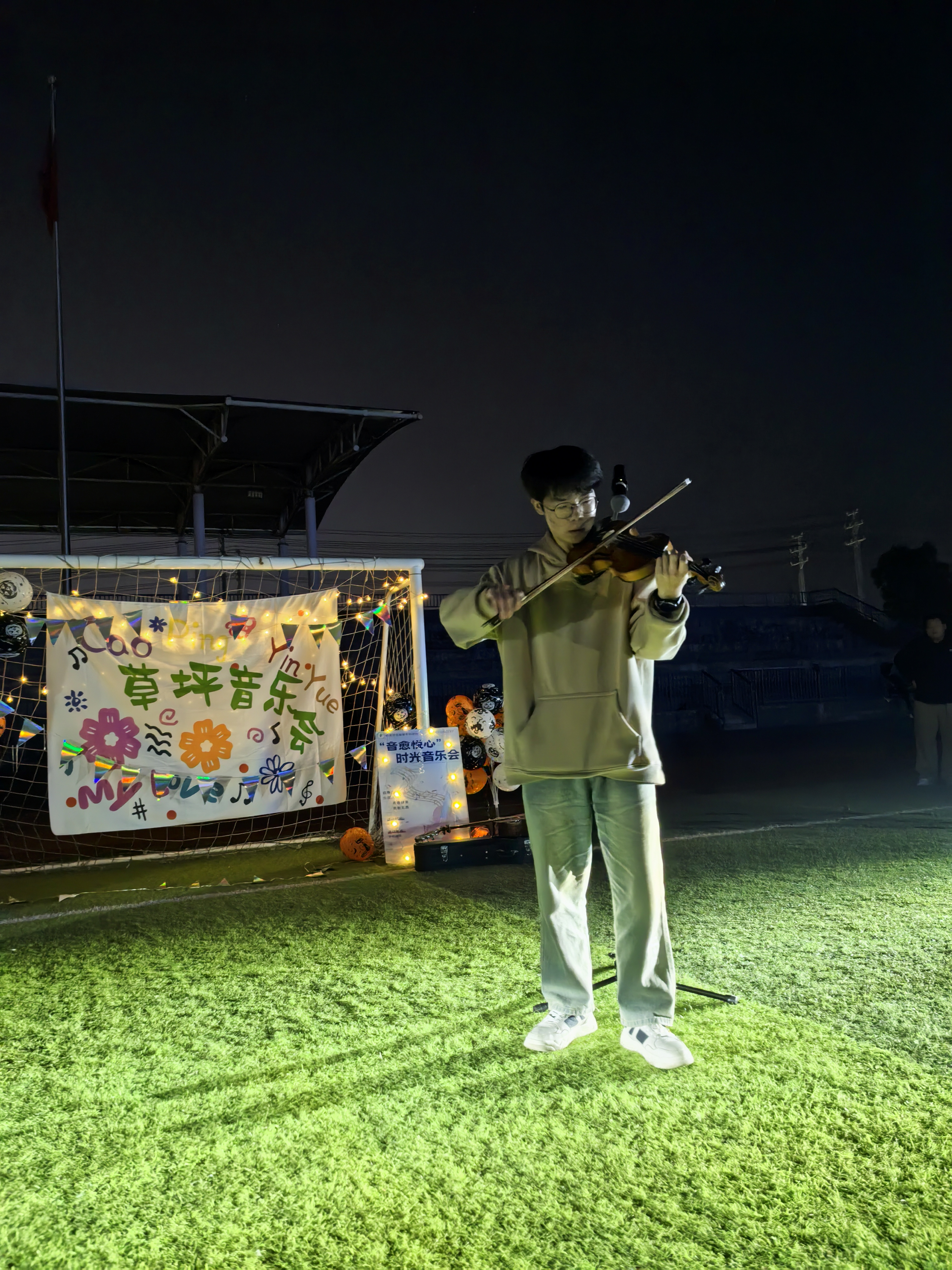 為發揮音樂豐富精神、溫潤心靈作用,以音樂實踐引導學生在接觸藝術、親近藝術中提升藝術素養、感受藝術魅力,放鬆心情、舒緩壓力。2024年11月5日晚,藝術與設計係聯合校學生處在校田徑場舉辦“音愈悅心”時光音樂會。