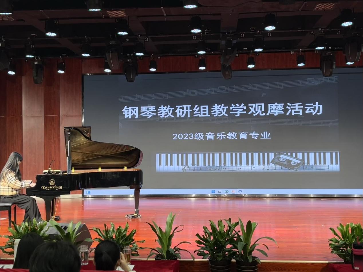 2024年11月27日下午,桐城師範高等專科學校藝術與設計係音樂教研室在音樂廳舉辦鋼琴學科組教研活動,由2023級音樂教育專業鋼琴主修的學生們輪流進行演奏展示,其餘師生觀摩。本次活動旨在展示鋼琴教學成果,促進師生間的交流與學習,提升音樂教育專業的教學質量。