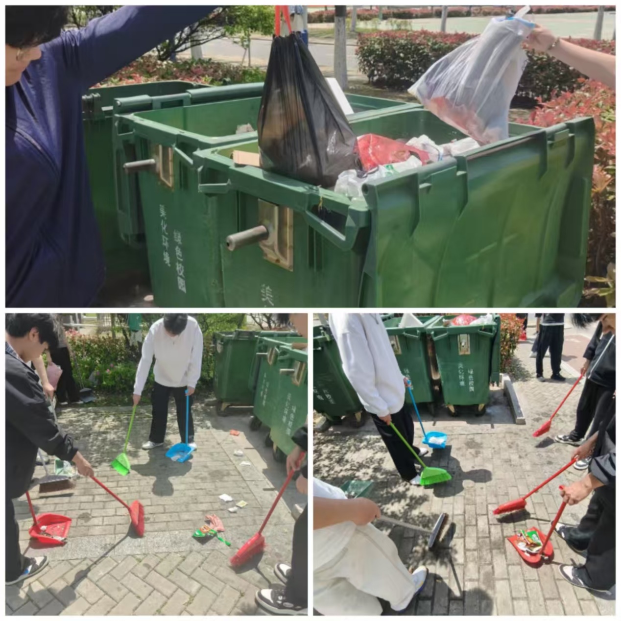 係部組織同學們提前製定詳細方案,劃分責任區域、明確任務分工。4月20日中午,同學們手持掃帚、垃圾袋等工具,對校園垃圾桶周邊、綠化帶、操場周邊等公共區域進行清理。有的彎腰撿拾草叢中的垃圾,有的認真清掃落葉,有的將垃圾集中分類搬運,現場忙碌而有序。經過大家的共同努力,校園環境得到了顯著改善,呈現出一片整潔、有序、生機勃勃的景象。