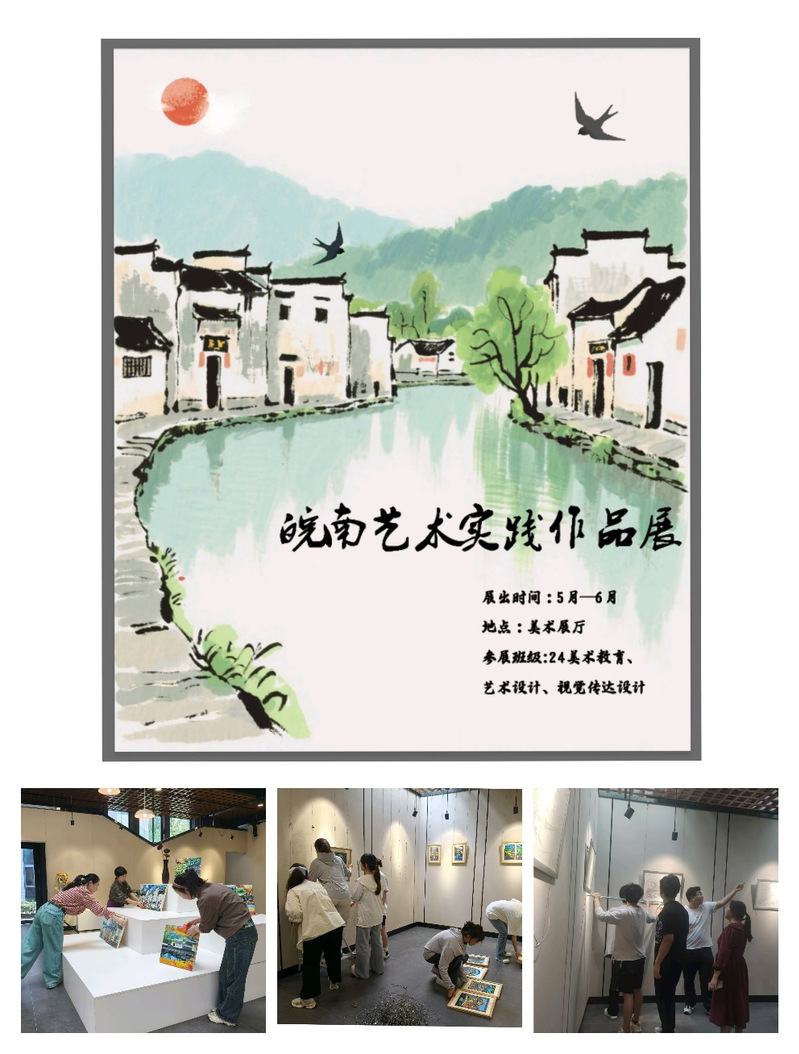 4月27日-29日,藝術與設計係24級美術教育專業、藝術設計專業、視覺傳達設計專業,皖南藝術實踐作品展在美術展廳布置完成。