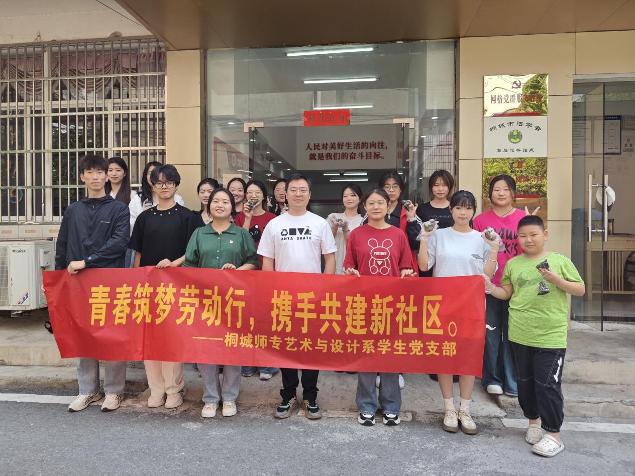 為強化青年學生勞動教育,引導學生樹立正確勞動觀念,推動青年與社區深度融合,5月25日上午,藝術與設計係學生黨支部、團總支及學生誌願者們走進桐城市西苑社區,開展“青春築夢勞動行,攜手共建美好社區”主題活動。此次活動吸引了20餘