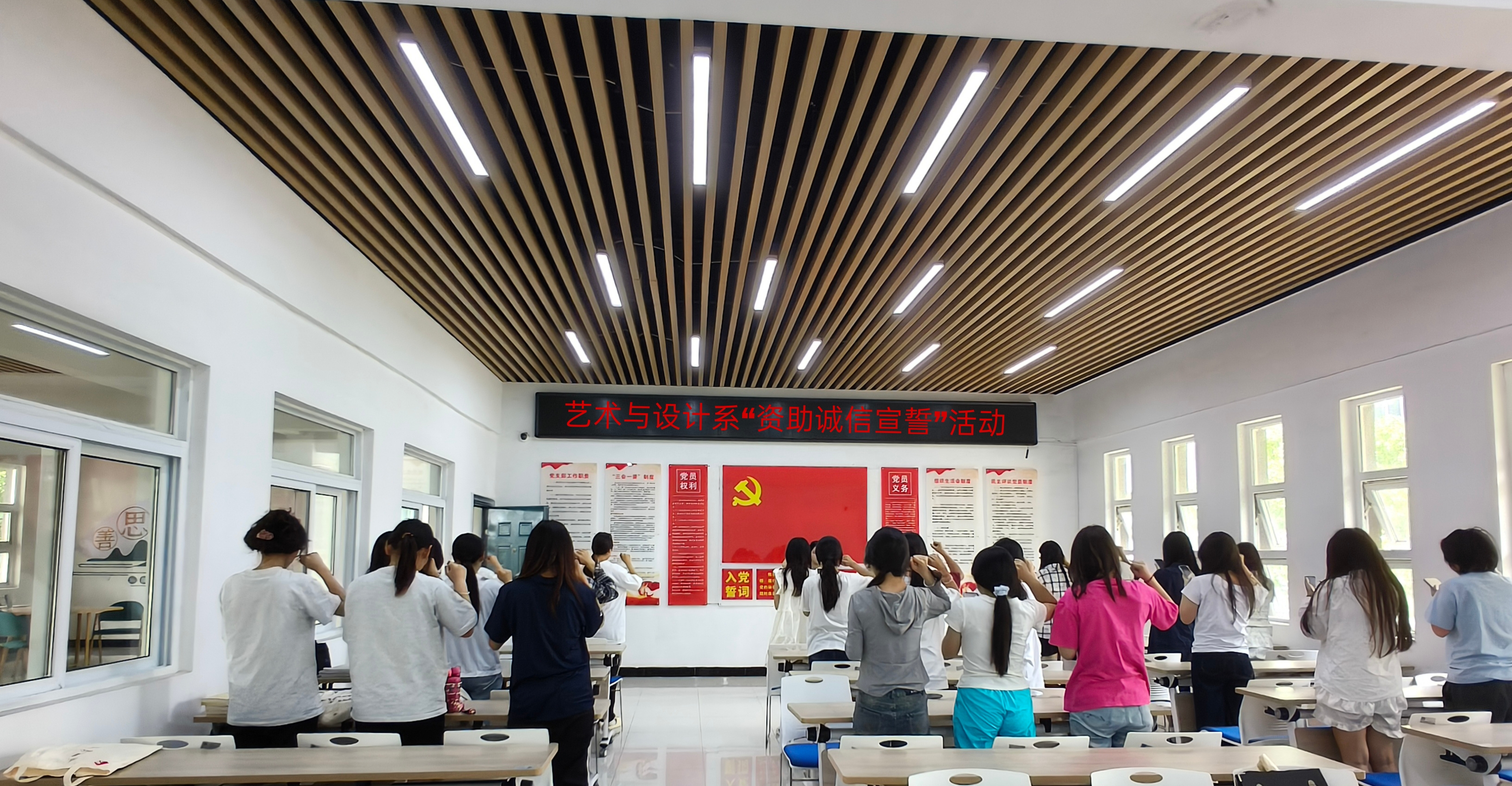 為落實立德樹人根本任務,強化資助工作的育人效果64午,我係在9-10#“一站式社區”開展資助誠信簽名宣誓活動。宣誓活動中,全體同學起立,右手握拳,聲音整齊而洪亮宣誓中,學生們感受到了一種莊重和責任感,他們明白這是對自己的一種承諾,也是對未來的期許,既是對他人的期望,也是對自己的要求。