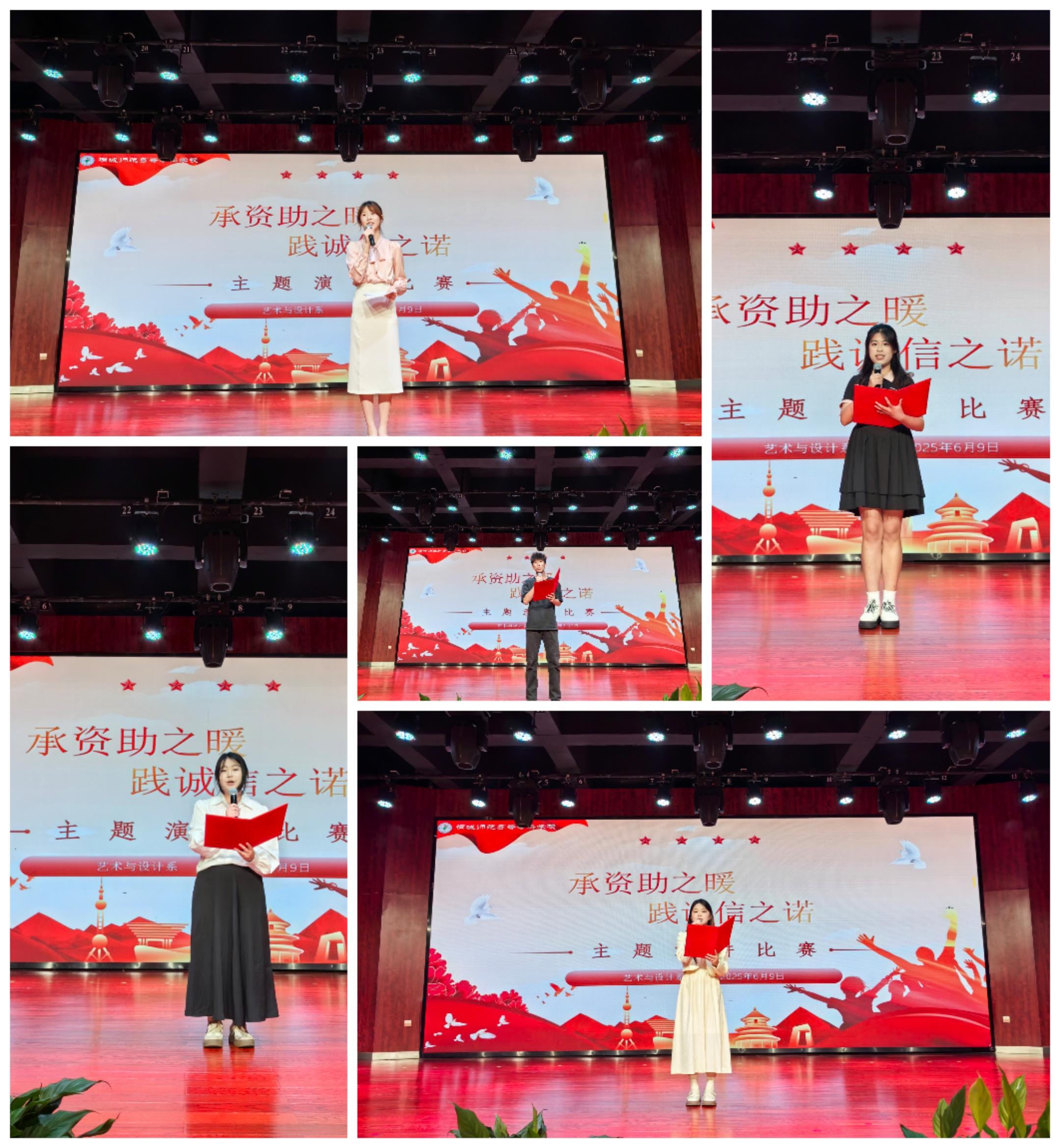 為深化資助育人成效,弘揚誠信文化,藝術與設計係於69日下午在校音樂廳舉辦“承資助之暖,踐誠信之諾”主題演講比賽。邀請到程周鵬、範後成、黃振三位老師擔任大賽評委,共有17位同學報名本次大賽。選手們從自身經曆或身邊故事出發,講述國家資助政策如何點亮求學之路,傳遞誠信受助、感恩回饋的信念。根據評委老師的現場打分,比賽結果如下: