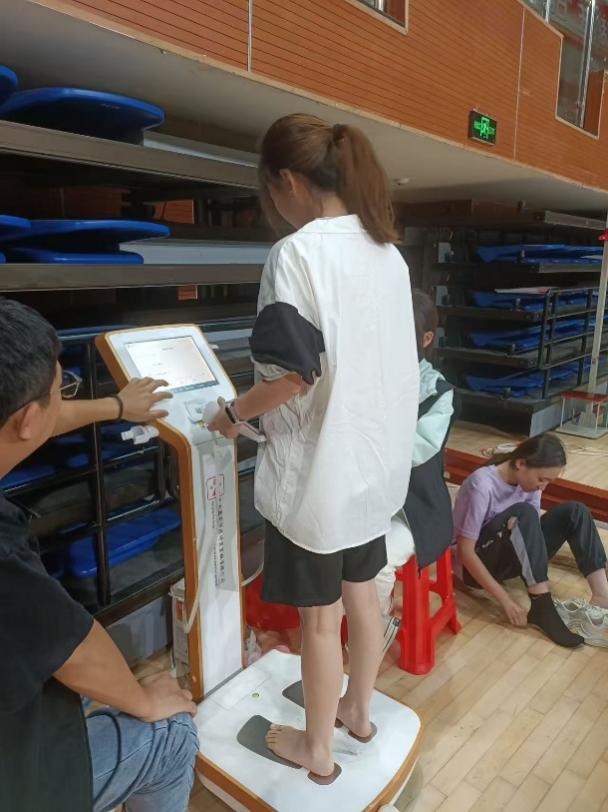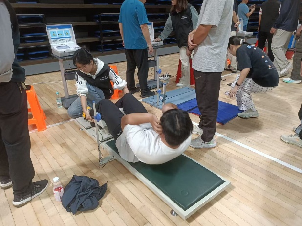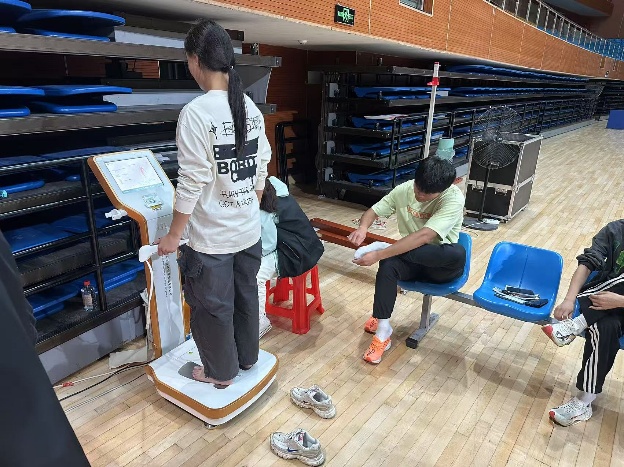 測試當天,各項工作有條不紊推進。工作人員嚴格依照《國民體質測定標準》,對學生展開多維度檢測:身體形態維度包含身高、體重、體脂率等指標;生理機能維度聚焦肺活量、血壓等項目;身體素質維度則涵蓋握力、坐位體前屈、立定跳遠,以及分性別進行的仰臥起坐(女)與俯臥撐(男)測試,全麵掌握學生體質狀況。