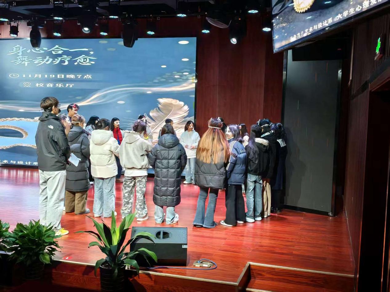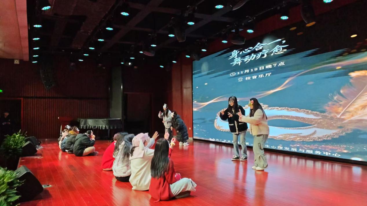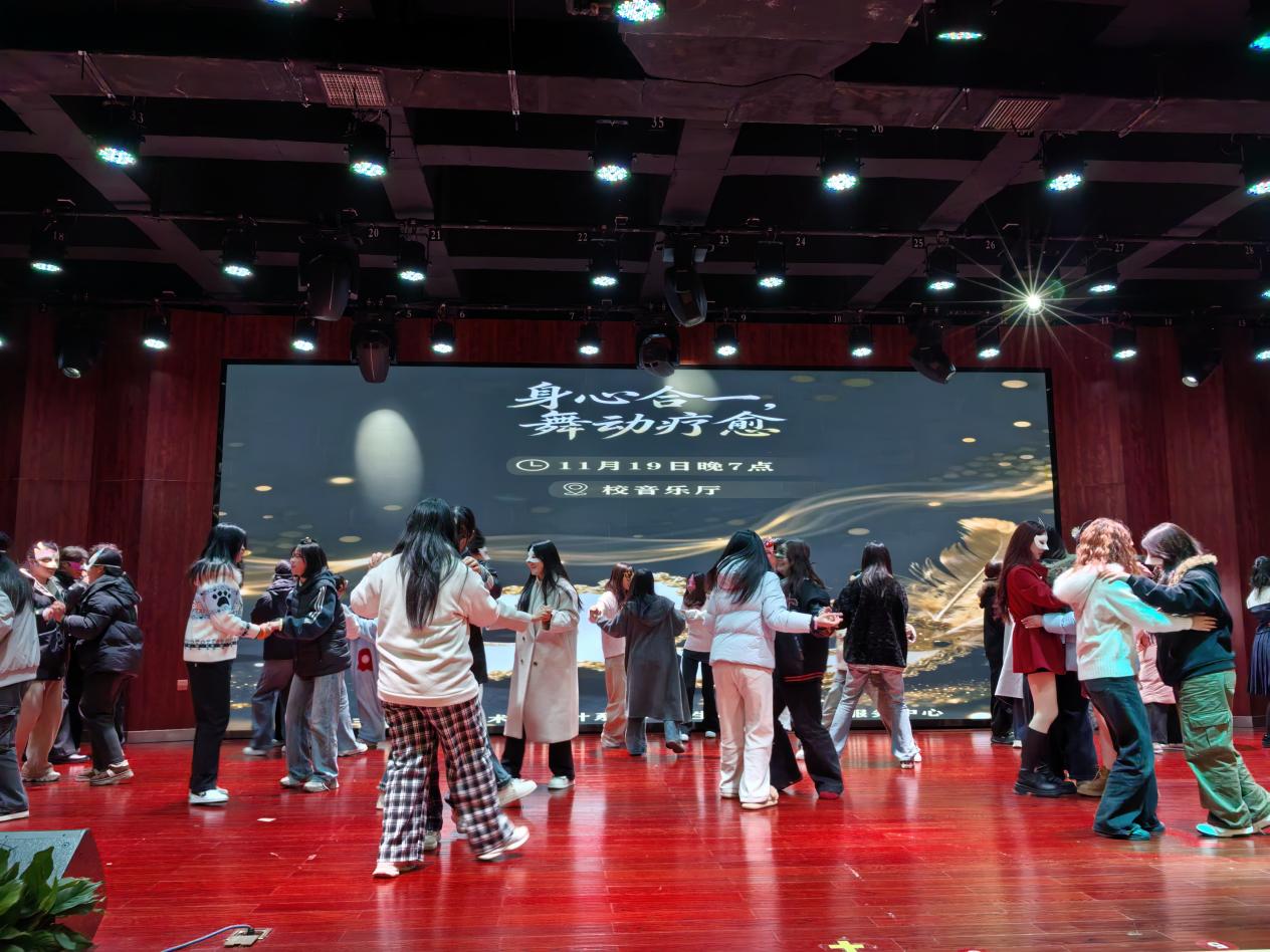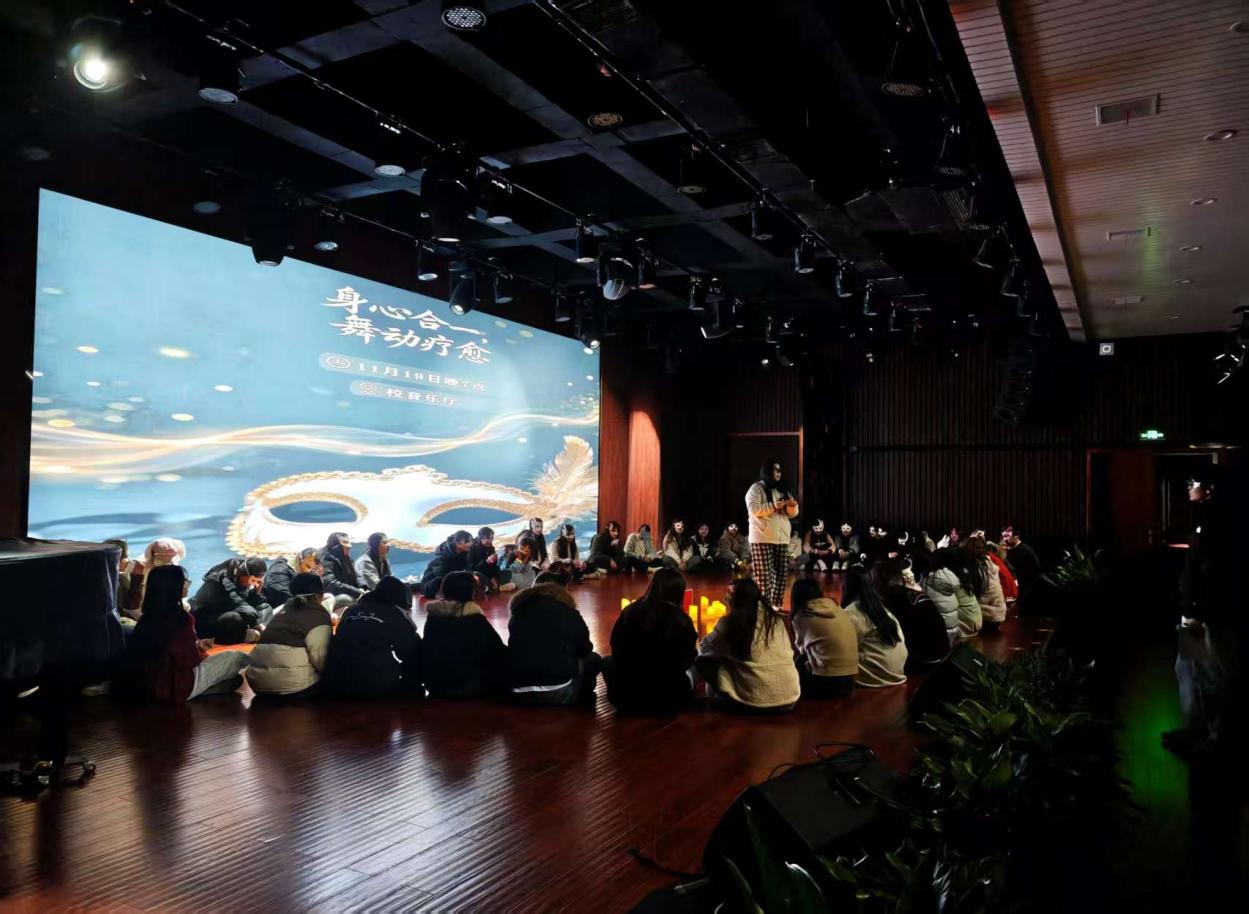 深化心理育人理念,豐富學生校園生活,全方位提升學生身心素養為幫助學生緩解社交壓力、實現身心放鬆,藝術與設計係於20251119日晚在音樂廳舉辦“身心合一·舞動療愈”假麵舞會活動,來自藝設係各年級各專業的46同學參與其中。