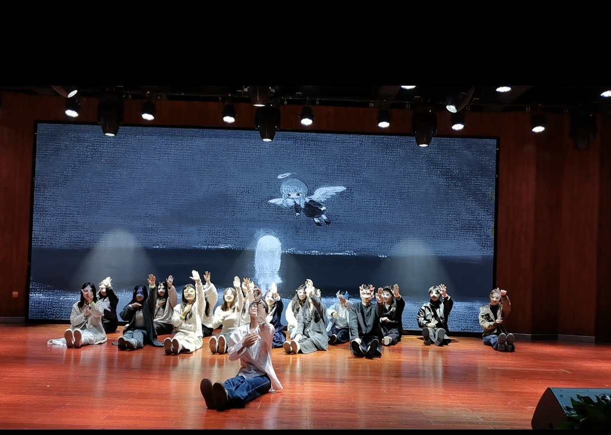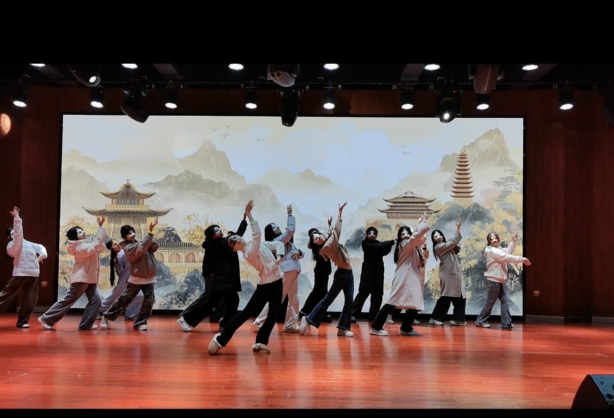 即興創作舞蹈環節中,音樂從舒緩轉向喜悅,同學們從最初的靦腆試探,逐漸隨著音樂節奏舒展肢體,讓假麵下的青春活力在自由律動中盡情迸發。