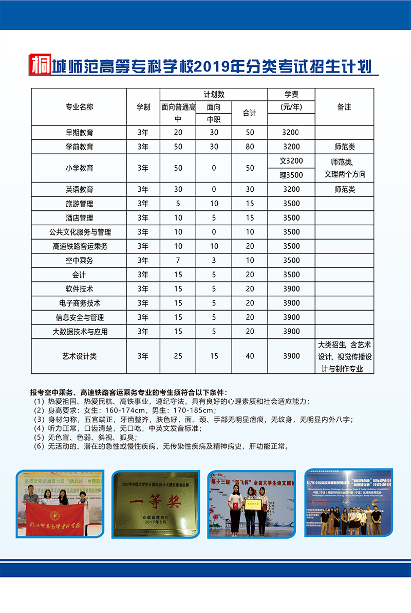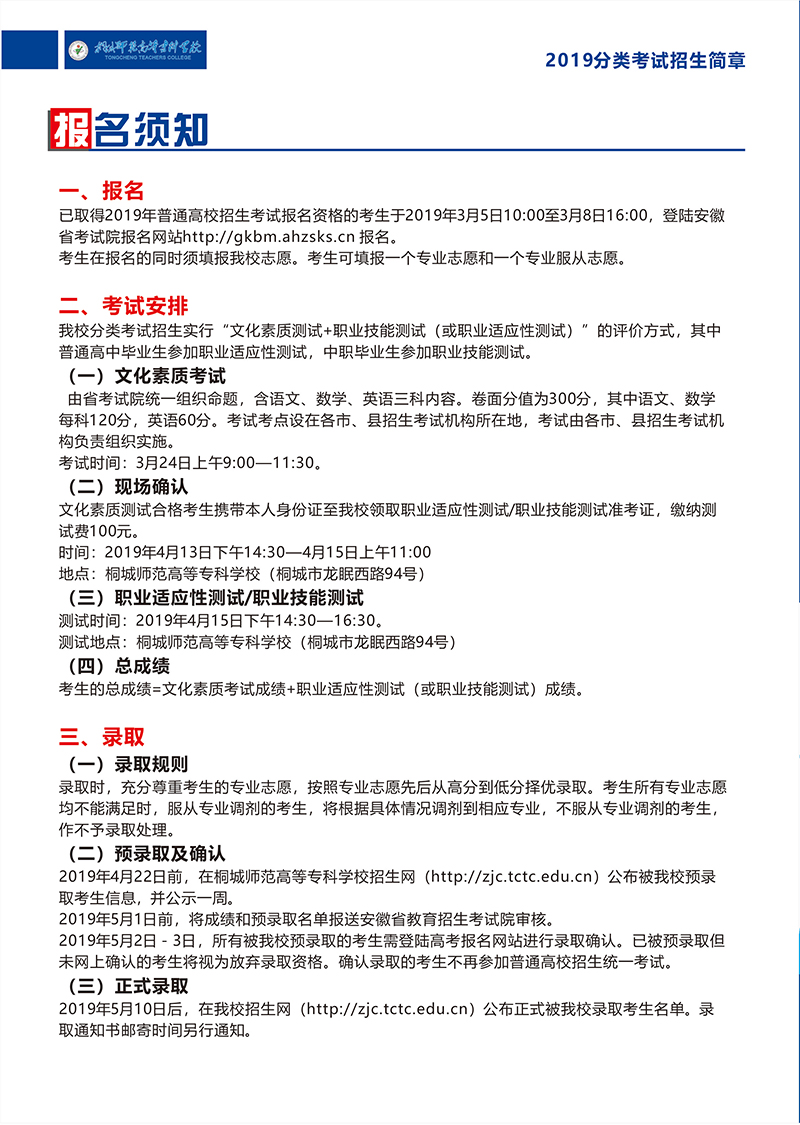 桐城師專2019年分類考試招生簡章