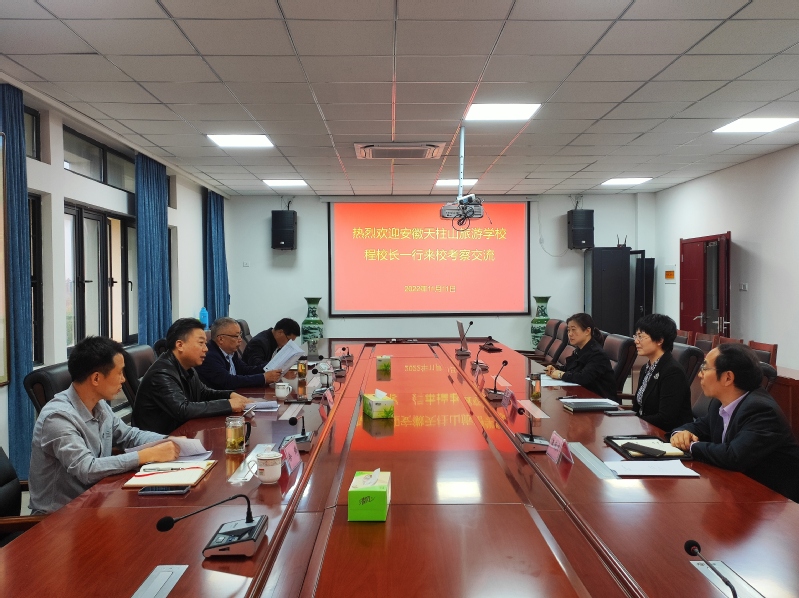1111日下午,安徽天柱山旅遊學校校長程後生副校長操雲龍、徐瑋一行四人來校考察交流。副校長程玉梅及旅遊與公共管理係、招生就業處負責同誌陪同交流考察