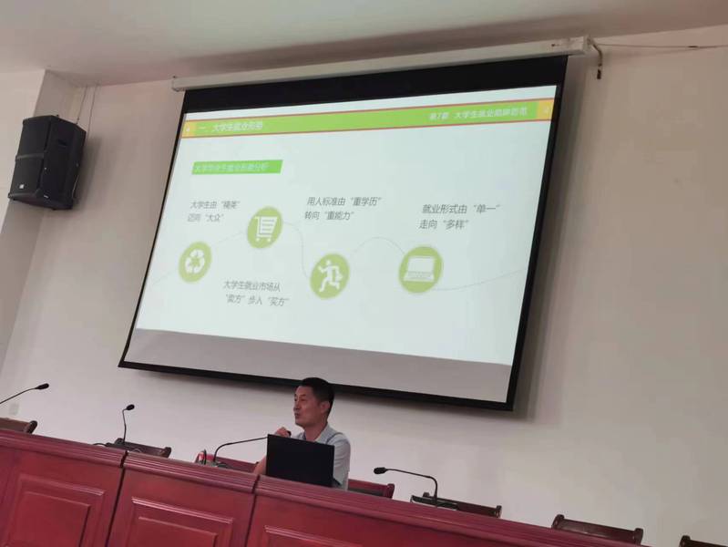朱興茂以“當前就業形勢與大學生就業陷阱防範”為主題,分析了當前的就業形勢,並圍繞“識別求職陷阱、如何自我防範、常見求職陷阱的防範措施”三個方麵詳細指導學生如學會識別求職陷阱,提高防範的意識和能力。