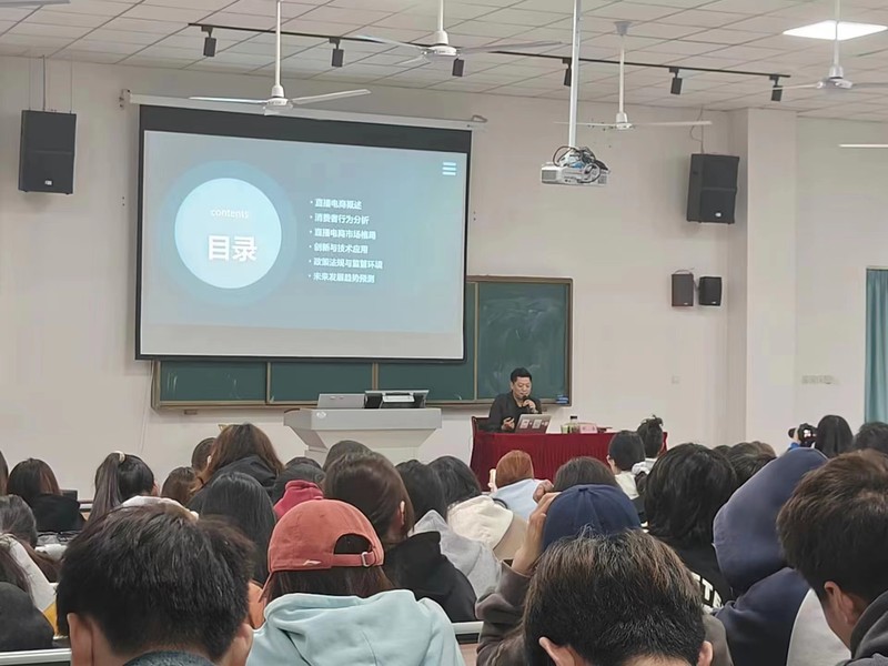 胡亞總經理以“直播電商”為主題,分享了自己的創業經曆,介紹了電商直播行業的發展現狀、市場環境和前景,通過介紹電商直播行業人才需求和勝任要求,鼓勵同學們加強專業知識與技能的學習。
