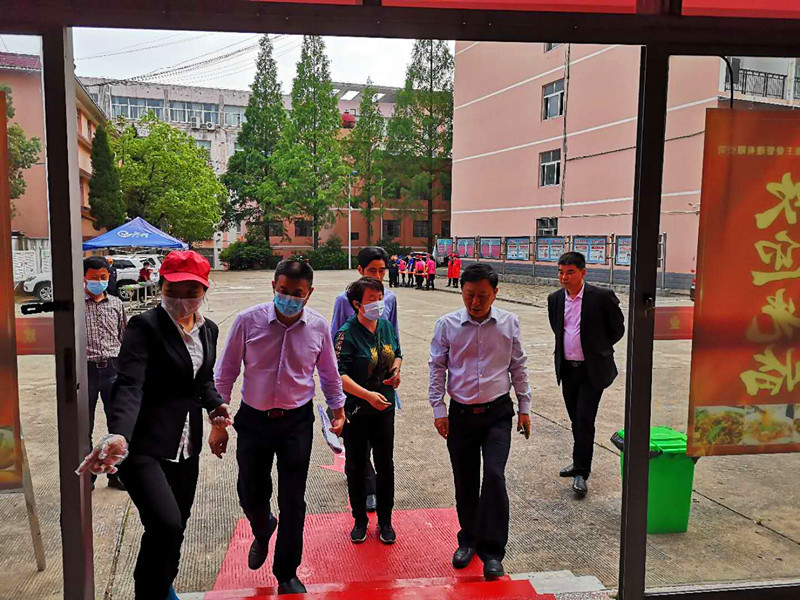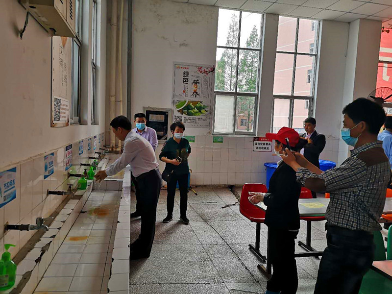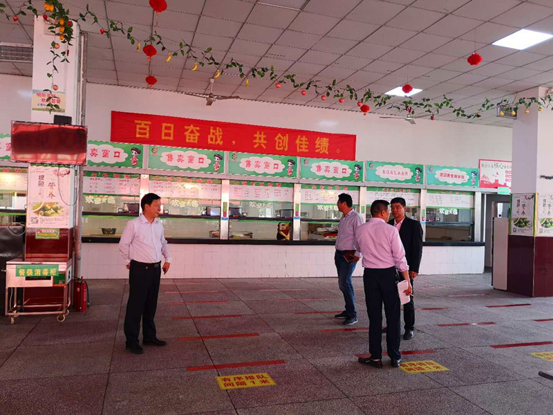 5月10日下午,根據學校開學方案要求和校園防疫工作需要,總務處在食堂組織開學前供餐模擬演練,校黨委委員、副校長吳登明親臨食堂,檢查指導工作。