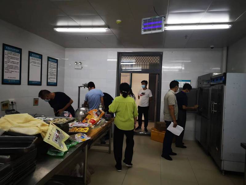 走進食堂,檢查組人員詳細查看了食堂員工的健康證、食堂環境衛生、飯菜品種質量價格、用電用水用氣安全、各環節責任人落實情況。並走進後廚,就食材有沒有進貨台賬,是否在保質期內?食堂有害生物“三防”有沒有做到?食物加工、切配、烹飪、分餐等環節食品安全保障是否到位?餐具消毒、食品留樣做得怎麽樣?……仔細檢查,尋找問題,督促整改。