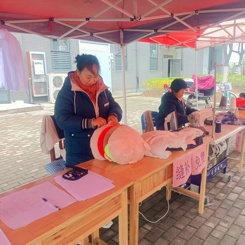 活動現場氣氛熱烈,歡聲笑語不斷。宿管區內,電動縫紉機嗡嗡作響。宿管員阿姨們手法嫻熟,雙手靈活地擺弄著布料,飛速轉動的縫紉機針腳細密均勻,將同學們開線的衣被、羽絨服仔細縫補。縫補完成後,阿姨們又拿起熨鬥,認真熨平衣物上的褶皺,每一個動作都飽含著對同學們的關懷。