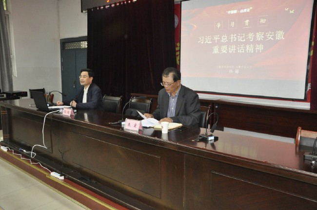 就進一步學習宣傳貫徹習近平總書記考察安徽重要講話指示精神,朱宏強調:一要深刻領會習近平總書記考察安徽的重大意義。桐城師專作為地方高校,必須深入貫徹習近平總書記關於奮力推進經濟高質量發展的重要論述,充分認識習近平總書記考察安徽重要講話指示精神的政治意義、現實意義和實踐意義。深刻把握“一個目標,五大任務”的深刻內涵。要在服務地方經濟和社會發展中找準高校定位,順應時代要求,提升學校治理能力和治理體係現代化的水平,實現更高質量,更有效率,更加公平,更加可持續的發展。二要深入學習貫徹習近平總書記關於教育的重要論述,堅持不懈地落實立德樹人根本任務,引導廣大師生踐行社會主義核心價值觀,落實好“舉旗幟,聚民心,育新人,興文化,展形象”的使命任務,牢牢把握黨對高校意識形態工作的領導權。構建“三全育人”的思想體係。把立德樹人和思想政治工作貫穿於关键词2的教育教學全過程。要把握輿論導向,加強課程思政建設,在全麵落實立德樹人根本任務的過程中,著力推進內涵建設、內部管理、規模效益、文化建設等整體水平的提升,培養一大批能夠擔當曆史重任的時代新人。三要深入學習貫徹習近平總書記關於加強疫情防控和穩就業方麵的重要論述。紮實開展好就業指導引導工作,要積極做好疫情防控工作。要按照省、市委的要求,認真落實好有關文件精神,嚴格落實防禦安全責任,完善聯防聯控機製,指揮協調應急快速反應的預警機製。明責任,嚴管理,促聯防,強監督,增效益。四要深入學習貫徹習近平總書記關於夯實黨執政的群眾基礎的重要論述。深刻領會東西南北中,黨是領導一切的深刻內涵。堅持黨對高校的全麵領導,堅持以政治建設為統領,切實加強黨的建設,深化黨風廉政建設,堅持黨的組織路線,切實加強幹部隊伍建設和師德師風建設。當前关键词2要以旗幟鮮明的政治態度和政治自覺,切實抓好巡視整改各項工作任務。要壓實責任鏈條,強化責任擔當,按照目標要求分階段落實好黨委出台的巡視反饋整改方案,以整改落實成效推進學校的高質量發展。要切實擔負起政治責任,要在“三會一課”中來體現學習貫徹落實習近平總書記重要講話指示精神,講政治,講擔當,講作風,講落實。(辦公室 撰稿:黃成林 核稿:劉久芳)