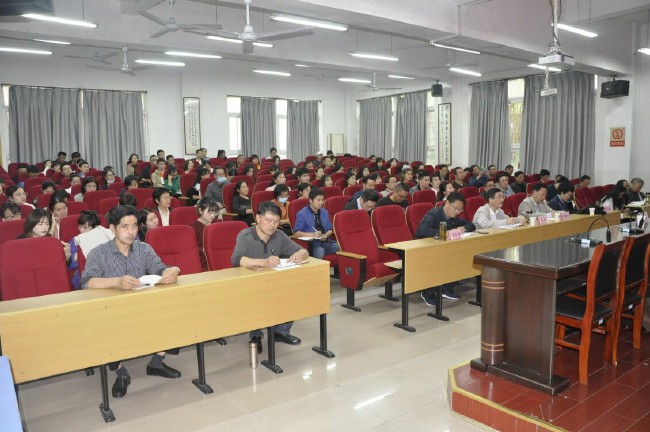 校黨委書記朱宏主持報告會,校領導沈波、吳登明、程玉梅、王宏偉出席,二級機構全體負責同誌,全體黨員教職工、思政課教師、入黨積極分子參加。