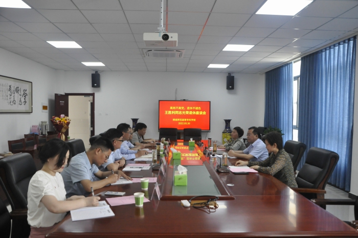 5月30日上午,桐城師範高等專科學校為2022年退休職工舉行了溫馨而隆重的榮退儀式,用濃濃的“儀式感”將關心關愛幹部的要求落到實處。黨委書記王子龍,黨委委員、紀委書記張敏麗,黨委委員、組織部長、統戰部長、組織人事處處長王宏偉,黨委委員、宣傳部長、辦公室主任伍建強與退休幹部王勝利參加座談會。