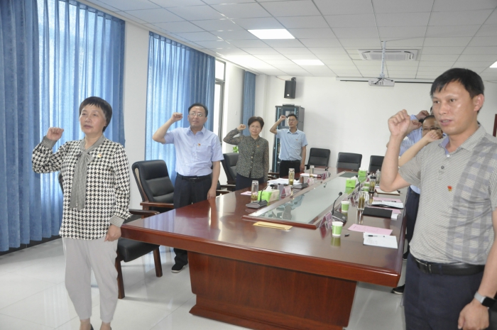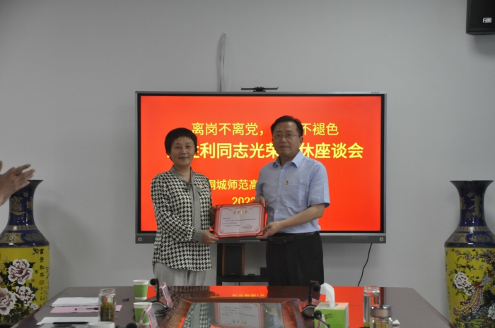 與會人員一起重溫入黨誓詞,隨後,校領導為王勝利同誌頒發《光榮退休證書》、贈送紀念品。